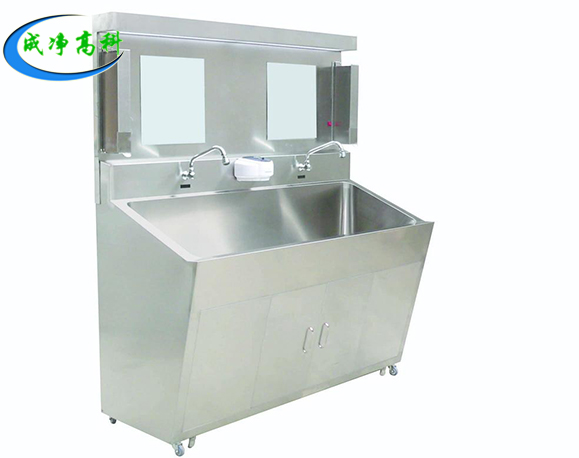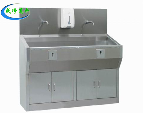 醫用洗手池又稱手術室洗手池,廣泛運用在手術室、無菌室、實驗室、等高衛生要求場所。手術室洗手分類:池醫用水池式樣有感應式、膝碰式、腳踏式,符合了凈化要求,無需人員手動開啟龍頭,就可以出水清洗使用的特點。洗手池采用優質SUS304-2B不銹鋼制作,一體化池體,無焊縫,更加牢固可靠,感應式水龍頭使用戶無需便可完成清洗工作;適用于潔凈室;配備照明,自動感應式水龍頭,篩網式落水,造型美觀大方,使用方便;可供選擇配置為加熱功能(電熱水器),自動皂液器等;單、雙、多人位設計提供各類型供用戶選擇; 洗手干手機為手術醫務人員和食品車間人員洗手設備,洗手池可采用人體感應,自動給水,避免使用人員的手部碰觸,有效防止洗手時的交叉感染。整體采用優質304不銹鋼制作,洗手槽內部采用圓弧角度、無縫焊接、深度打磨拋光處理。